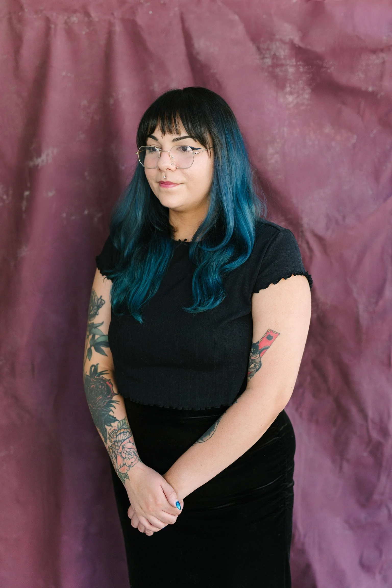 Logan, often called Lo by friends, is a non-binary stylist with over a decade of experience in the hair arts. A NELA local since 2015, they specialize in hand-styled, air-dried, lived-in cuts that are easy to wear, and they also enjoy creating vivid colors, balayage, and gender-affirming haircuts. Logan strives to provide a comforting and warm environment in the salon, with their favorite part being the opportunity to meet all the wonderful new people who come through.